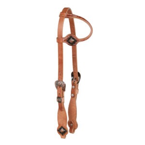 ONE EAR COPPER FLORAL BUCKLE W/DIAMOND CONCHO OILED WESTERN BRIDLE